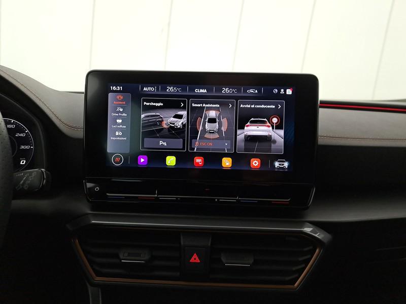 ESTENSIONE GARANZIA 2 ANNI/80 000 KM, CERCHI IN LEGA DA 18 PERFORMANCE 38/2 MECCANIZZATI NEL COLORE, BLOCCO DIFFERENZIALE, CAMBIO AL VOLANTE, VOLANTE RISCALDATO, VETRI SCURI, TERMINALI DI SCARICO NASCOSTI DI FORMA RETTANGOLARE, SPECCHIETTI RETROVISORI ELETTRICI - RISCALDABILI, SPECCHIETTI RETROVISORI COLORATI, SISTEMA DI CHIAMATA D'EMERGENZA, SISTEMA DI RICONOSCIMENTO STANCHEZZA GUIDATORE, INDICATORE PRESSIONE PNEUMATICI, FISSAGGI ISOFIX, SEDILI SPORTIVI, PACCHETTO SICUREZZA, PERSONALIZZAZIONI LINEA E STILE, SEDILI ANTERIORI REGOLABILI, PRESA 230V, PNEUMATICI, IMPIANTO AUDIO CON TOUCHSCREEN, PERSONALIZZAZIONE COLORI ESTERNI, SISTEMA DI ASSISTENZA AL MANTENIMENTO DELLA CORSIA, KEYLESS SYSTEM, FULL LINK, ASSISTENTE ALLA FRENATA, FRENO DI STAZIONAMENTO ELETTRICO, FARI FULL LED, SELETTORE STILE DI GUIDA, RADIO DIGITALE DAB, STRUMENTAZIONE DIGITALE CON DISPLAY, CUPRA CONNECT, COVER CHIAVE, SISTEMA DI RICARICA WIRELESS PER SMARTPHONE, CLIMATIZZATORE AUTOMATICO A TRE ZONE, CIELO, CERCHI IN LEGA DA 18, BRACCIOLO ANTERIORE, BRACCIALETTO CUPRA IN FIBRA DI CARBONIO, ILLUMINAZIONE ABITACOLO, SICUREZZA, ACCESSO REMOTO, AIRBAG LATERALI, AIRBAG FRONTALI, AIRBAG A TENDINA, AIRBAG, SENSORI DI PARCHEGGIO POSTERIORI, AIRBAG DISINSERIBILE ESTENSIONE GARANZIA 2 + 2 OPPURE 80.000 KM